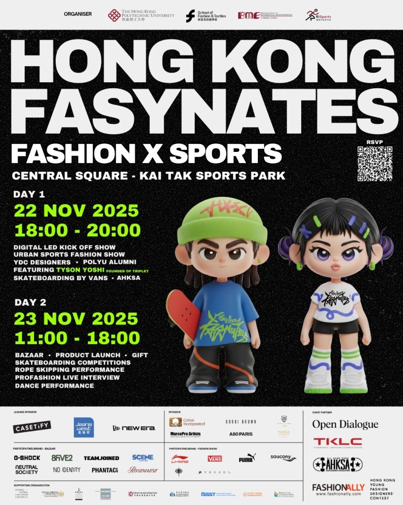 FASYNATES is a creative blend of Fashion, Synergy, and the suffix -nates, symbolizing PolyU’s vision to elevate urban sports fashion into a powerful narrative that transforms how people experience style and movement.