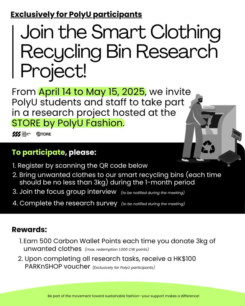 March 4 marked a monumental Garment Recycling Day at PolyU! A heartfelt thank you to our incredible partners - The Salvation Army, Friends of the Earth (HK), Redress, and The Conservancy Association.