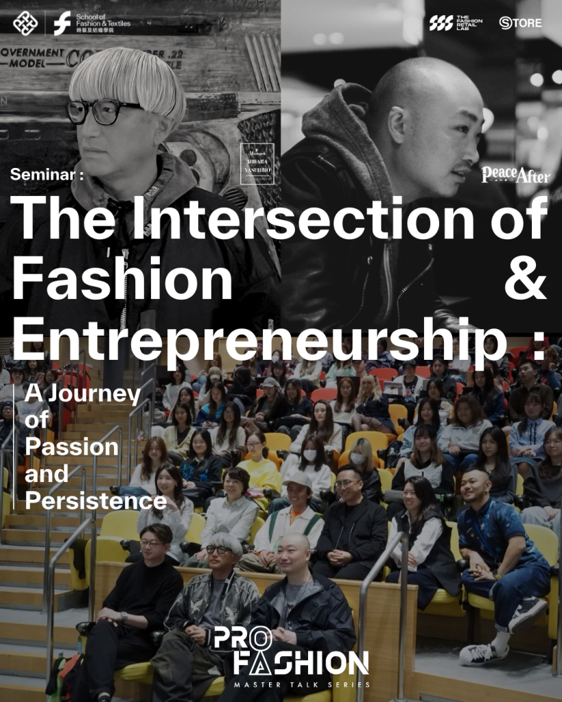PROFASHION Master Talk Series Seminar : Supported by Open Dialogue, we’re honored to invite Mr. Mihara Yasuhiro, world-renowned fashion designer, and Mr. Calvin Chan, the founder of Peace and After, to share their success stories and experiences in the class “Introduction to Fashion Business.”