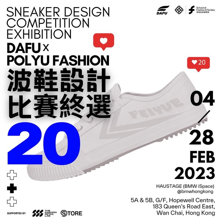 Congratulations to our 20 finalists of DaFu X PolyU Fashion Sneaker Design Competition Exhibition ! Please join us by visiting HAUSTAGE (BMW iSpace) and vote for your favourite design.