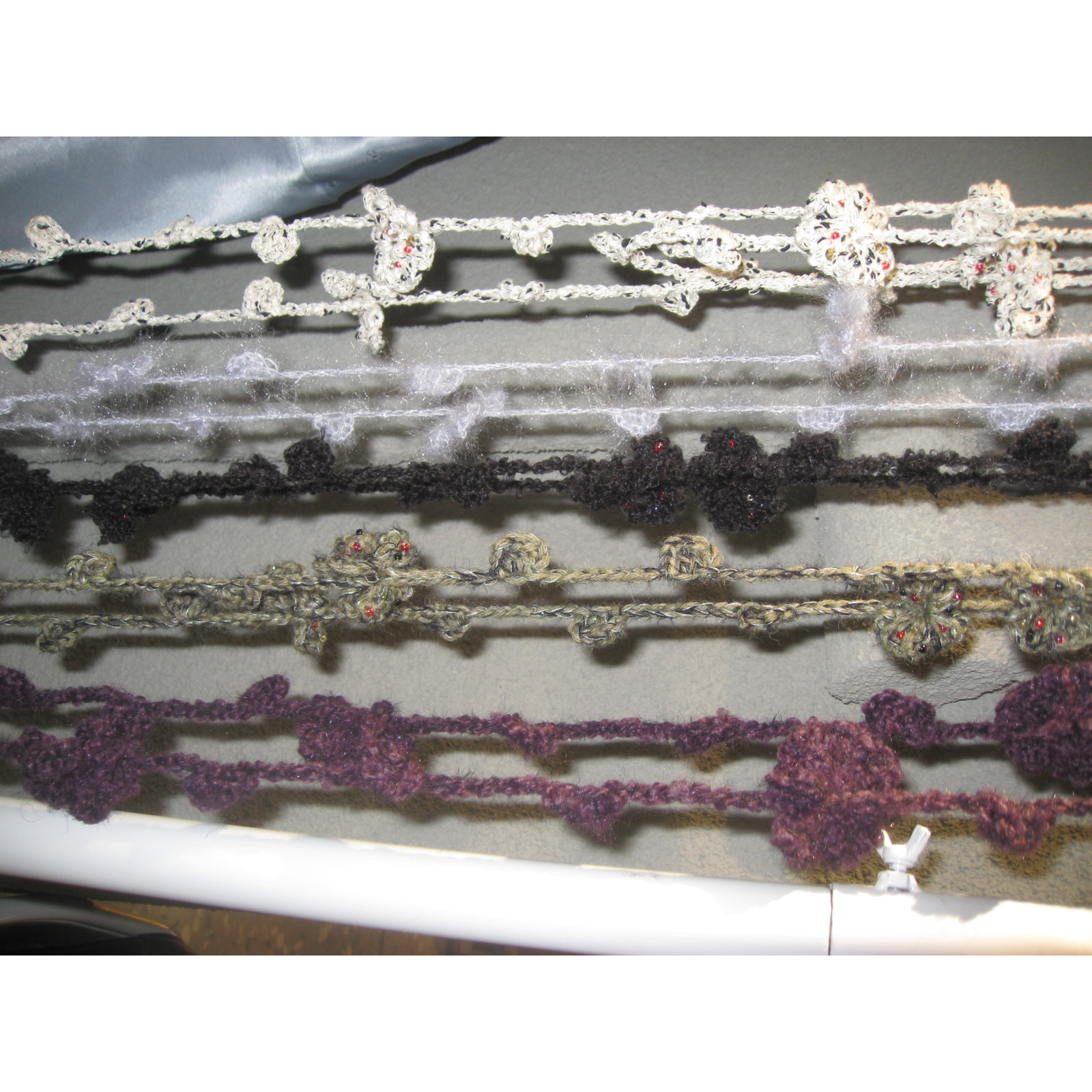 Crochet floral scarf embroided with Japan glass beads and shell beads.