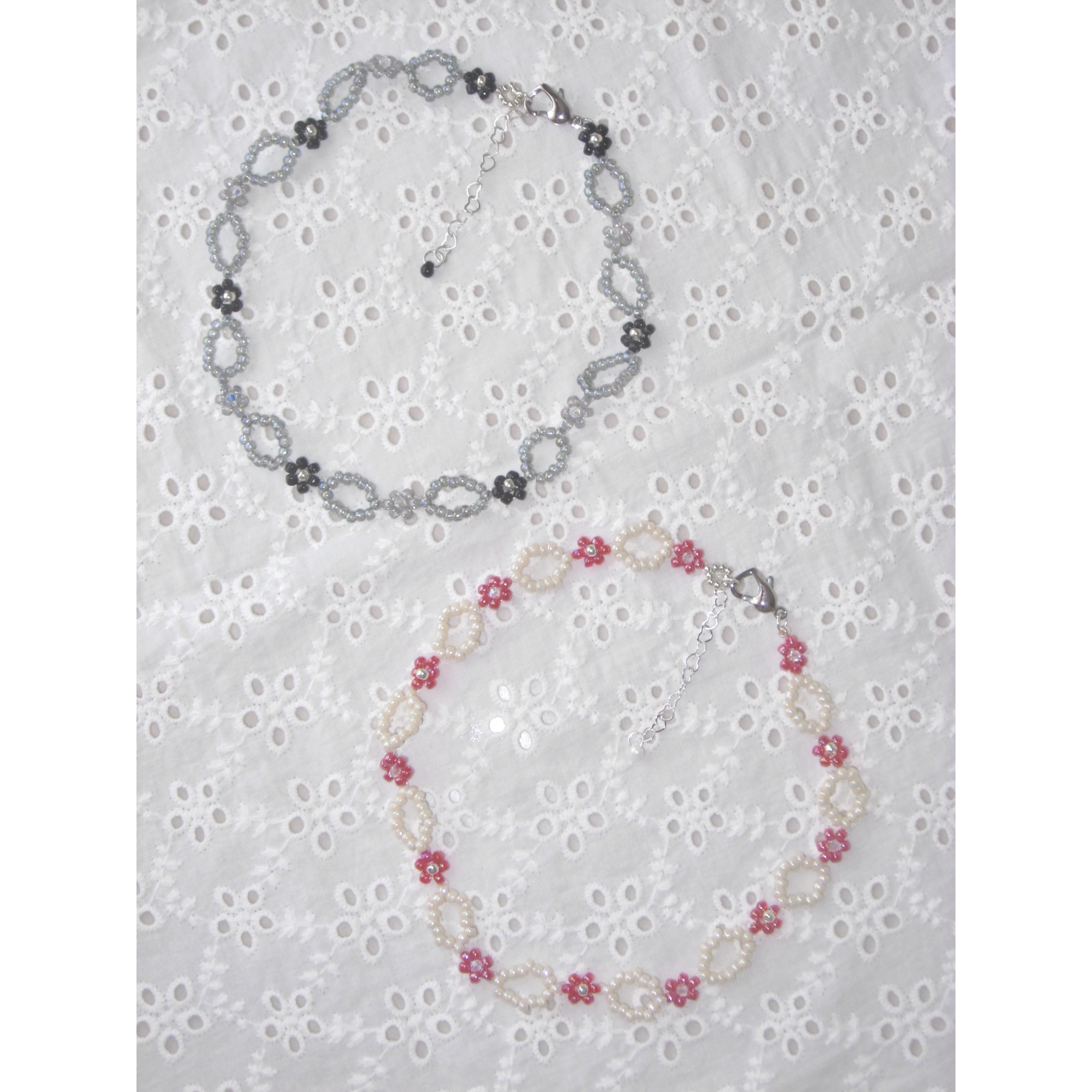 Beads: Japan glass beads, freshwater pearls, Czech Republic crystals