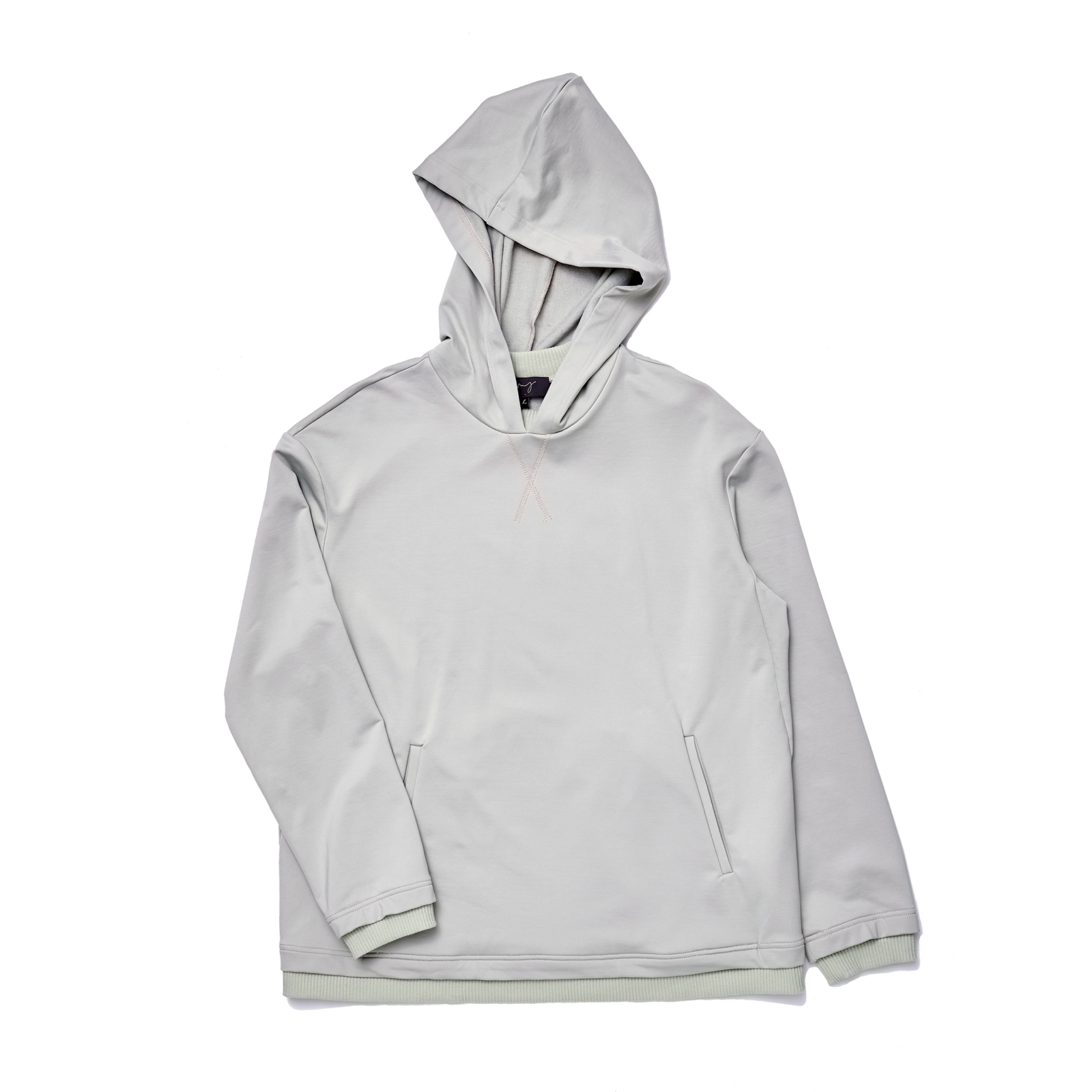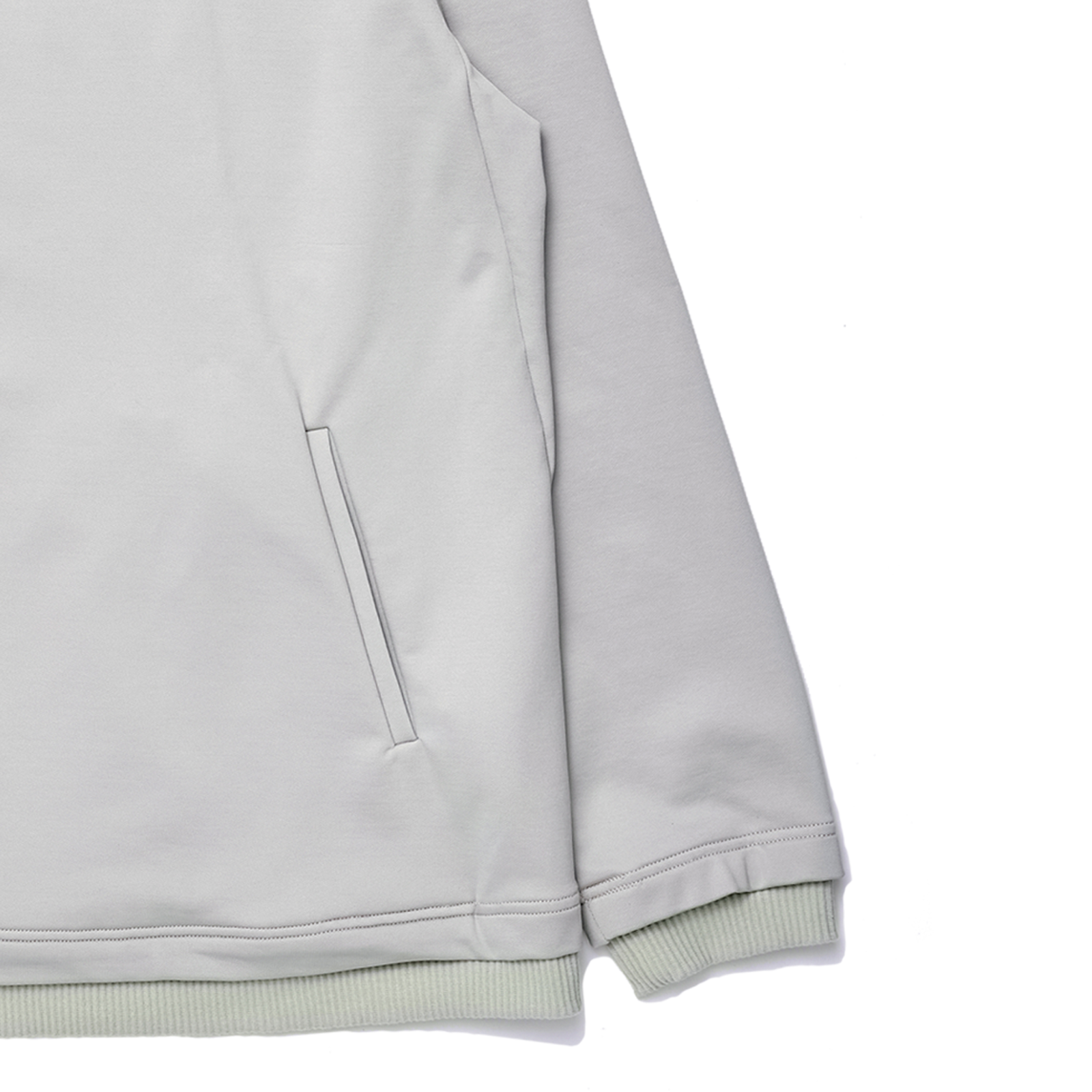 Rib collar sweater with front pocket.