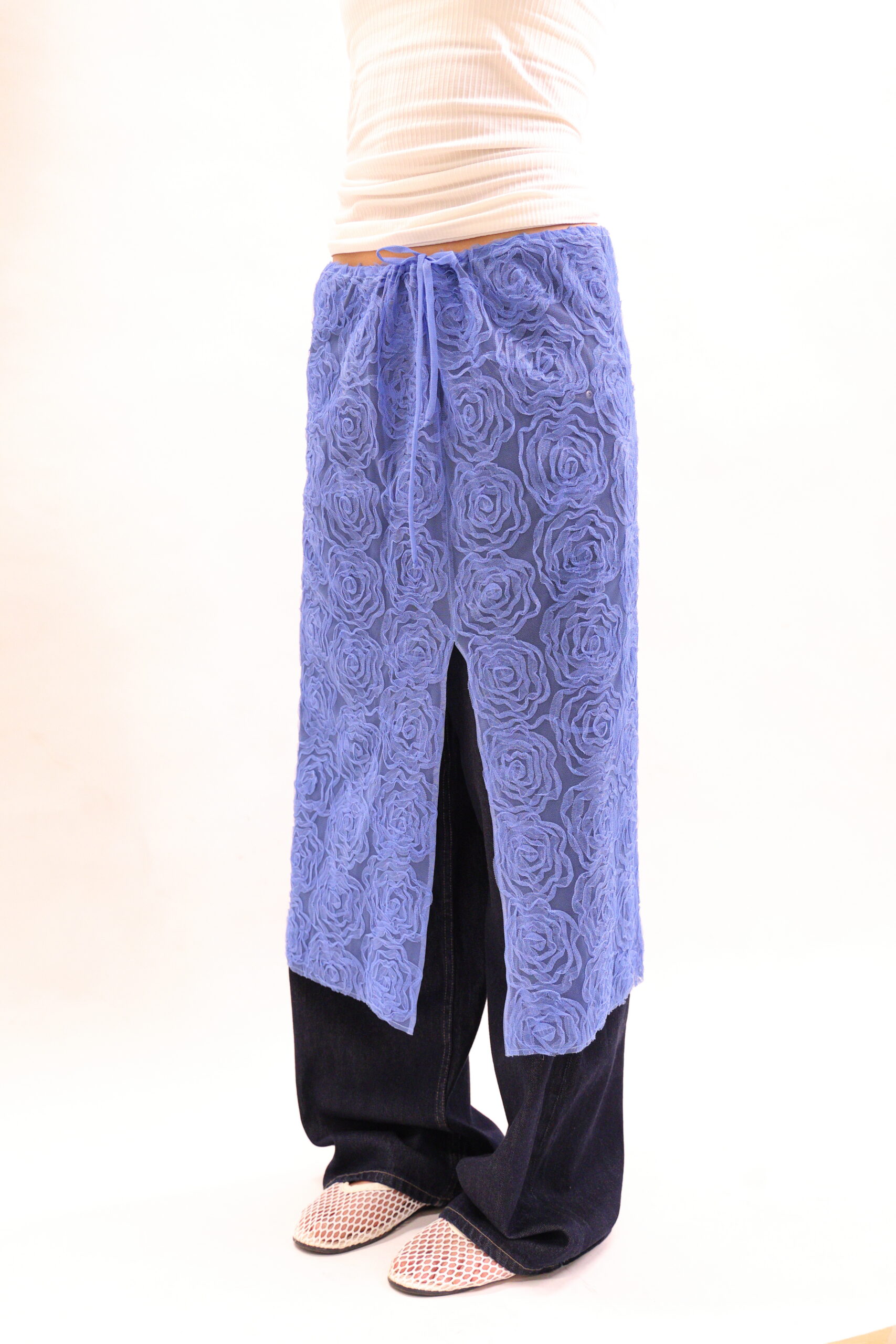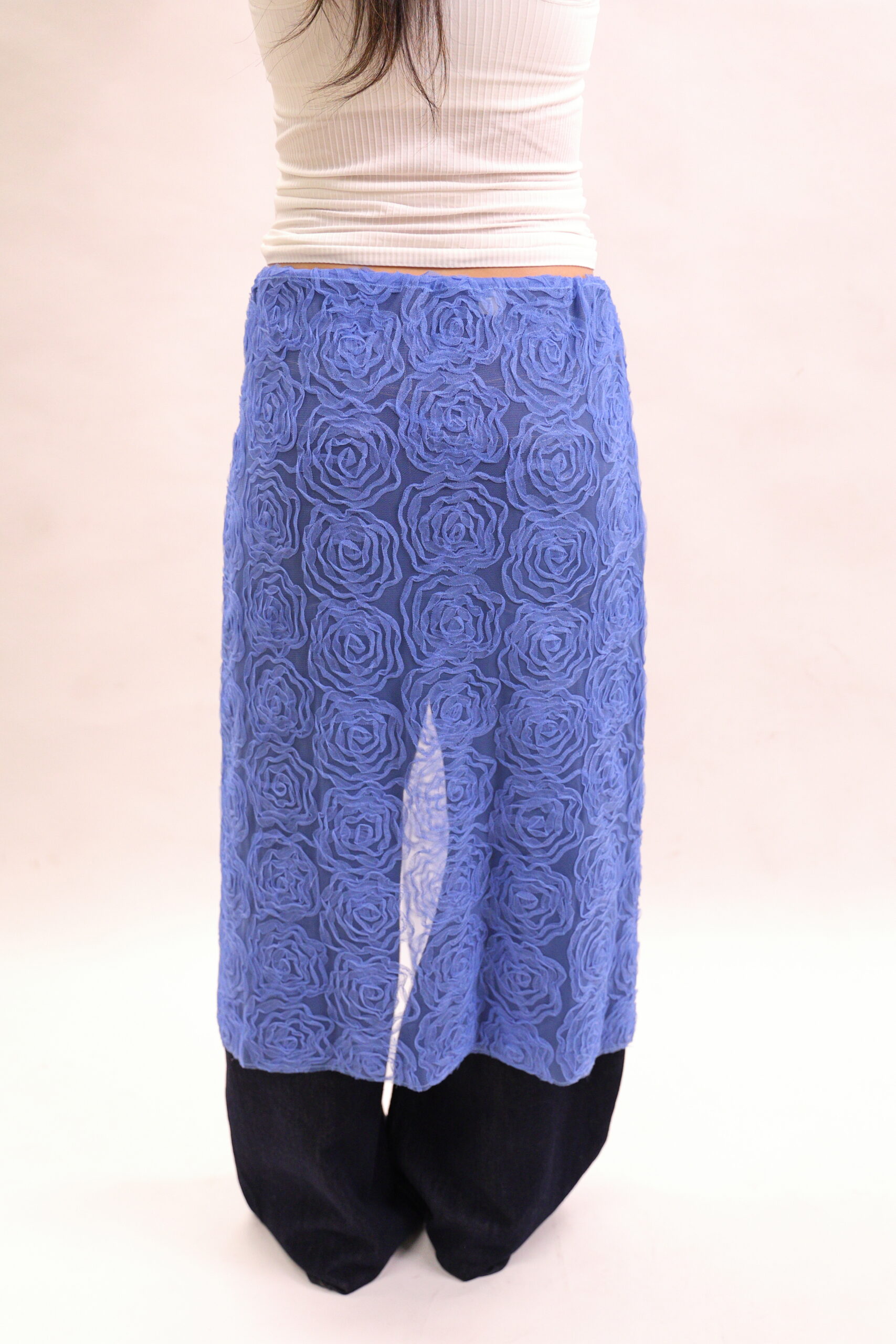 Rose-shaped mesh midi skirt