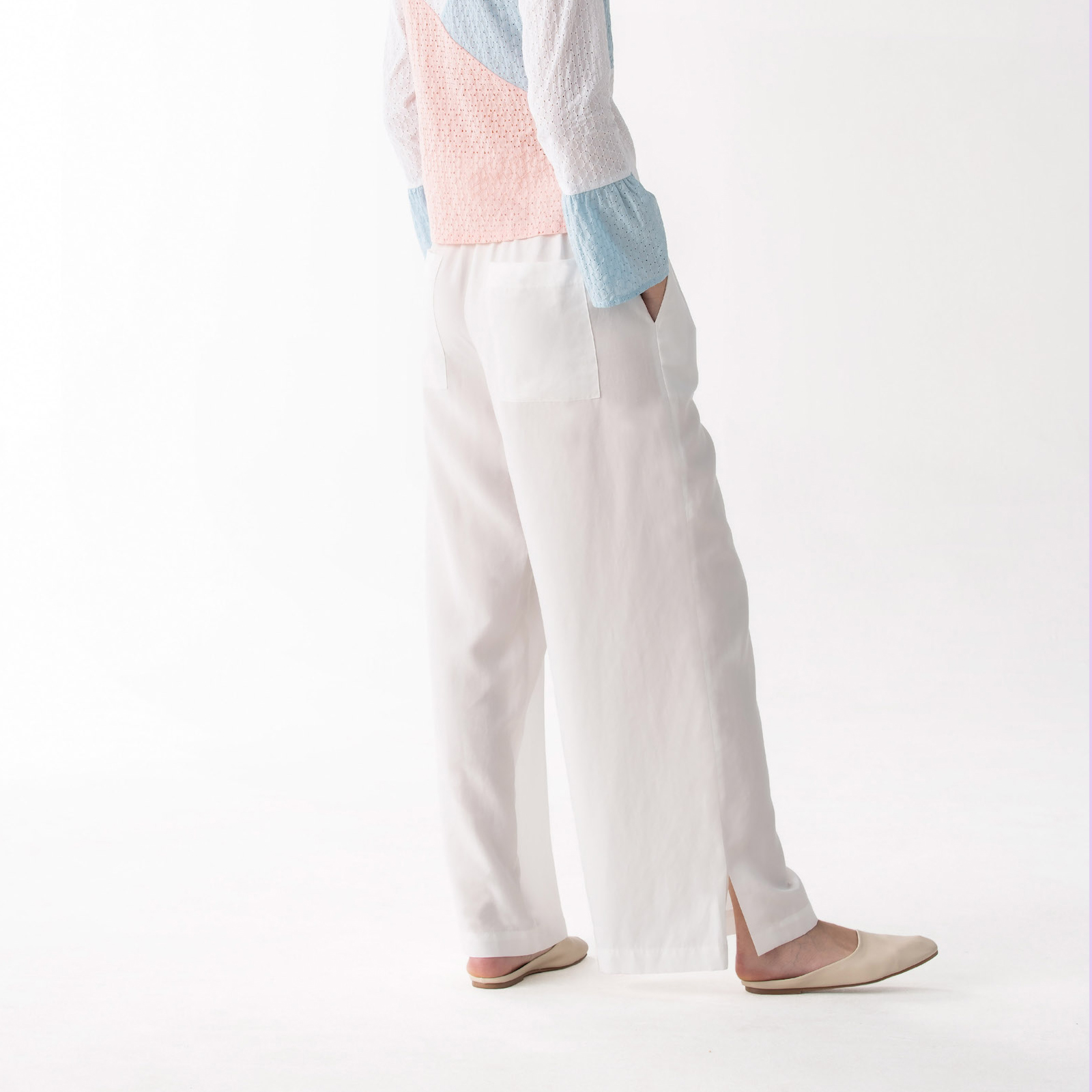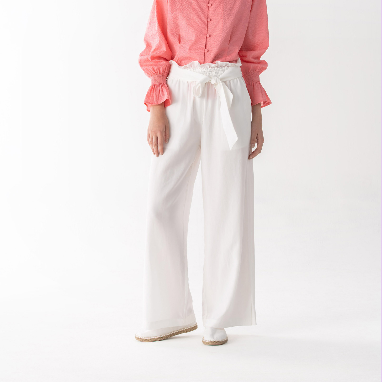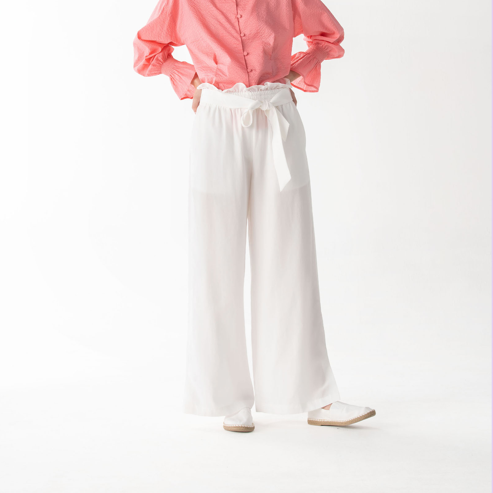 Relax fit pants made in Tencel linen, which keep skin cool and dry during spring summer. Elastic waistband with ruffle detail at waist. Perfect easy for any mix & match. Tencel and linen are eco-friendly materials which give minimum harm to environment in production.