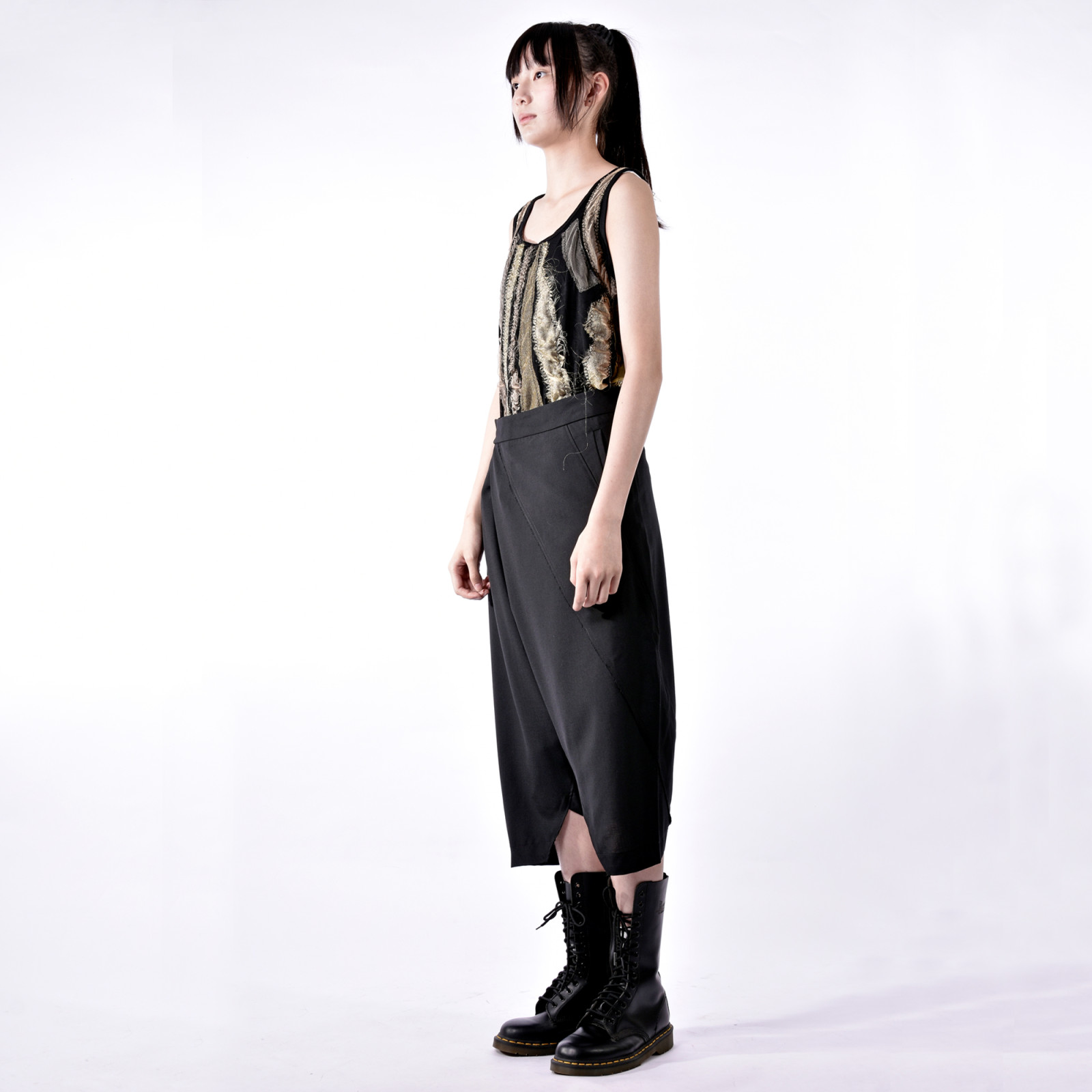 Angular hem and slant side side with draped silhouette – enhance the body lines